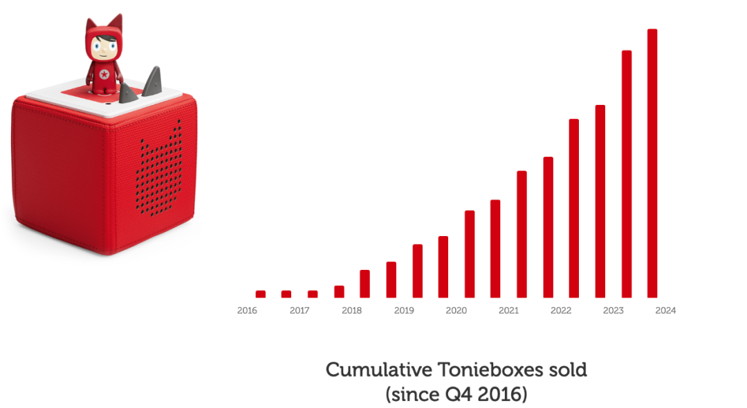 (自2016年第四季度以来Toniebox销售呈指数级增长)