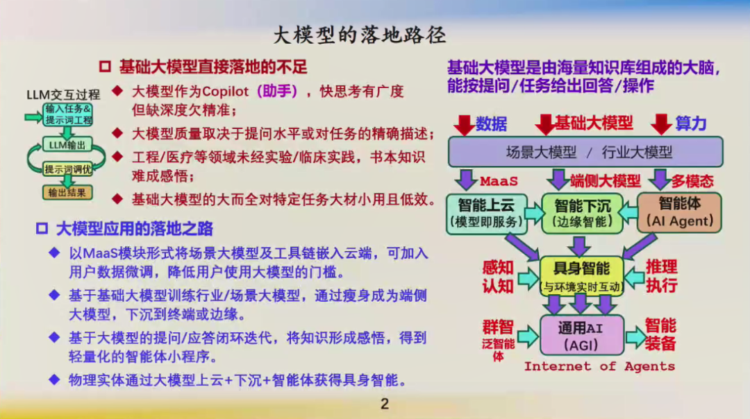 一是大模型作为Copilot(助手),快思考有广度但缺深度欠精准;